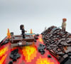 - Features a cutout of both the lava stream and shore as well as a hovering mining platform and DLC-13 mining droid