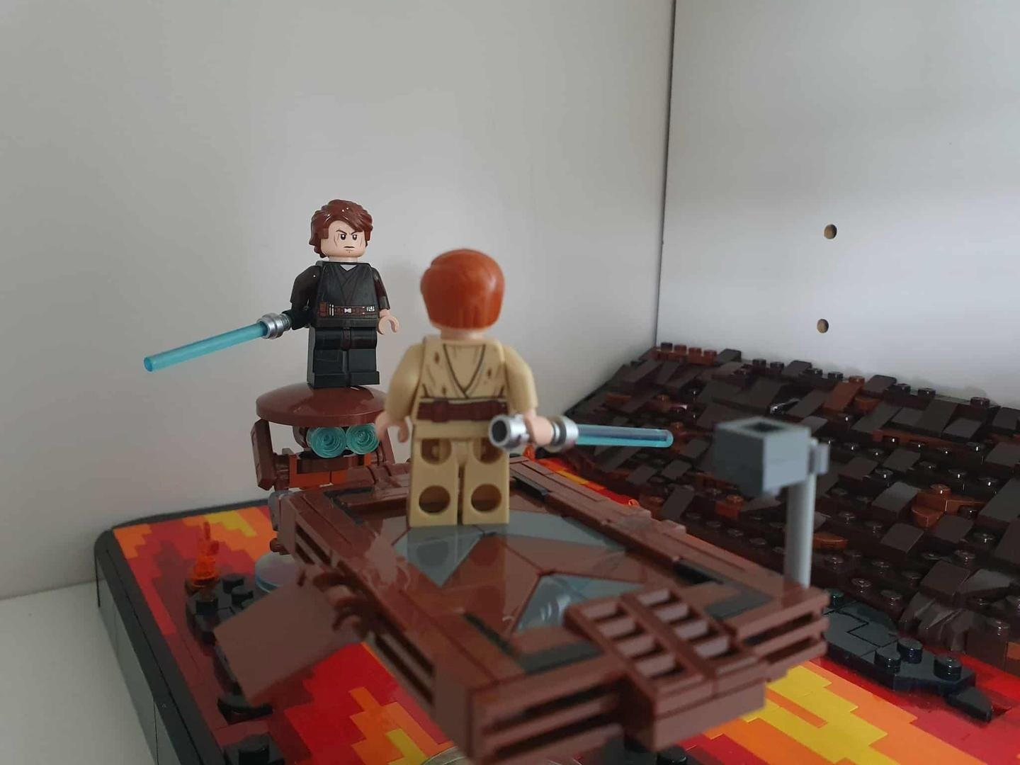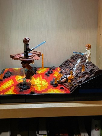 On the volcanic planet of Mustafar, Anakin Skywalker fought his former Jedi Master Obi-Wan Kenobi in an epic showdown, at which end the recently apprenticed Darth Vader receives severe injuries, causing him to wear a life-sustaining armor for the rest of his life...This diorama replicates the final moments of the Duel on Mustafar from Star Wars: Revenge of the Sith.